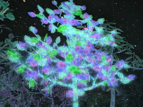夕食を食べて、最後に『ウィングス・オブ・タイム』を鑑賞しました。光と水のショーで、ビーチに座っての鑑賞です。学生たちはワクワクしながらショーの開始を待ちます。いよいよショーが始まると、ストーリー仕立ての壮大な幕開き。海に浮かぶスクリーンへのプロジェクションマッピングから始まります。ストーリが動き始めた次の瞬間、噴射された水飛沫に映像が浮かび上がり、これまでに経験したことのない技術に思わず声が漏れます。光や音だけでなく、水や火も使った壮大なショーに学生たちも感動していました。
