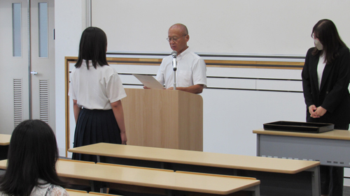 寮生会役員および寮長とブロック長の名前が読み上げられ、坪井校長から任命書が授与されました。