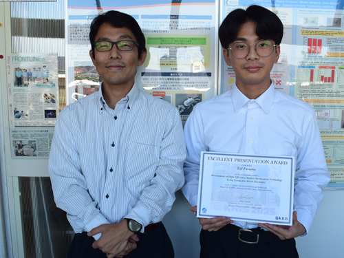 令和7年8月24〜25日に一橋講堂にて開催されたKRIS2025にて、電気電子工学科出身で専攻科電気電子情報工学専攻1年の古莊 英司さん(指導教員:上野 崇寿)が優秀発表賞(Excellent Presentation Award)を受賞しました!!