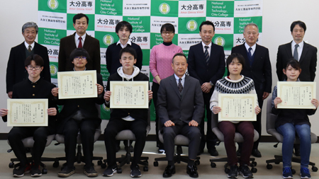 12月13日(月)に、大分高専は「大分工業高等専門学校学生表彰についての申合せ」に基づき、学生の模範となる行動をした学生に対し「特別賞」の表彰を行いました。表彰された学生及び表彰理由は次のとおりです。