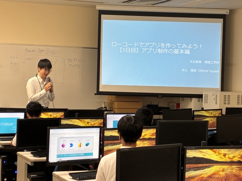 「アプリって作るの難しそう…」と思っている人でもアプリを作れるようになることを目指して、8月27日・28日の2日間、本校学生向けに「ローコードアプリ開発講座」を開催しました。この講座では、Microsoft Power Appsを使って、ほとんどプログラムコードを書かずにアプリを作る方法を学びました。