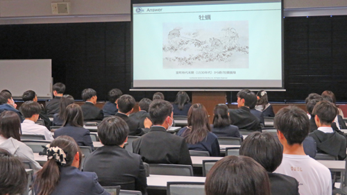 海外勤務で得た視野の広さや、多様な文化の中で培った柔軟な発想が、現在同氏が注目する国内水産業への取り組みにどのように活かされているのかが紹介され、学生たちにとって大きな刺激となりました。また、高畑氏は教育分野にも積極的に関わっており、次世代の人材育成に力を注いでいる点も印象的でした。