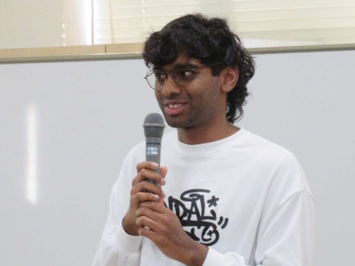 卒業する2人からは、最初はことばや授業に戸惑ったが、教職員、チューターなどに助けられ、大分高専で貴重な経験ができたことへの感謝の気持ちが述べられました。最後に、学生主事の大庭先生から、激励の言葉をいただき、送別会は無事終了しました。